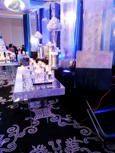 Decorations at the front of the room, where the bride and groom were seated for the duration of the wedding (until they got up and shook their booties, of course).
