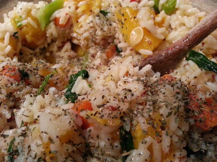 I made fall-themed rice salad for the first time. Ingredients included butternut squash, kale, mushrooms, red peppers and carrots.
