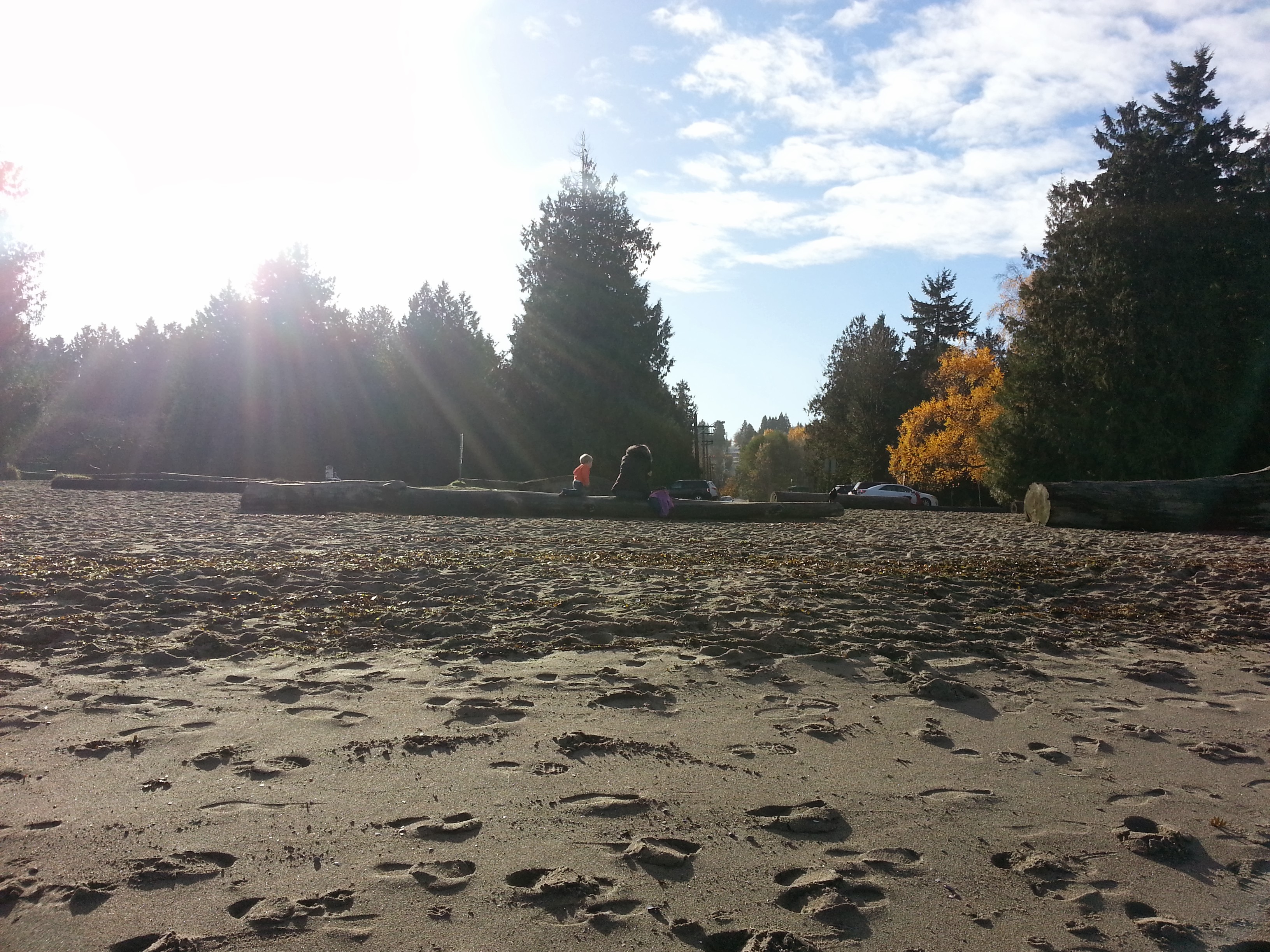 A mother and her child enjoying the morning sunshine at Jericho Beach.
