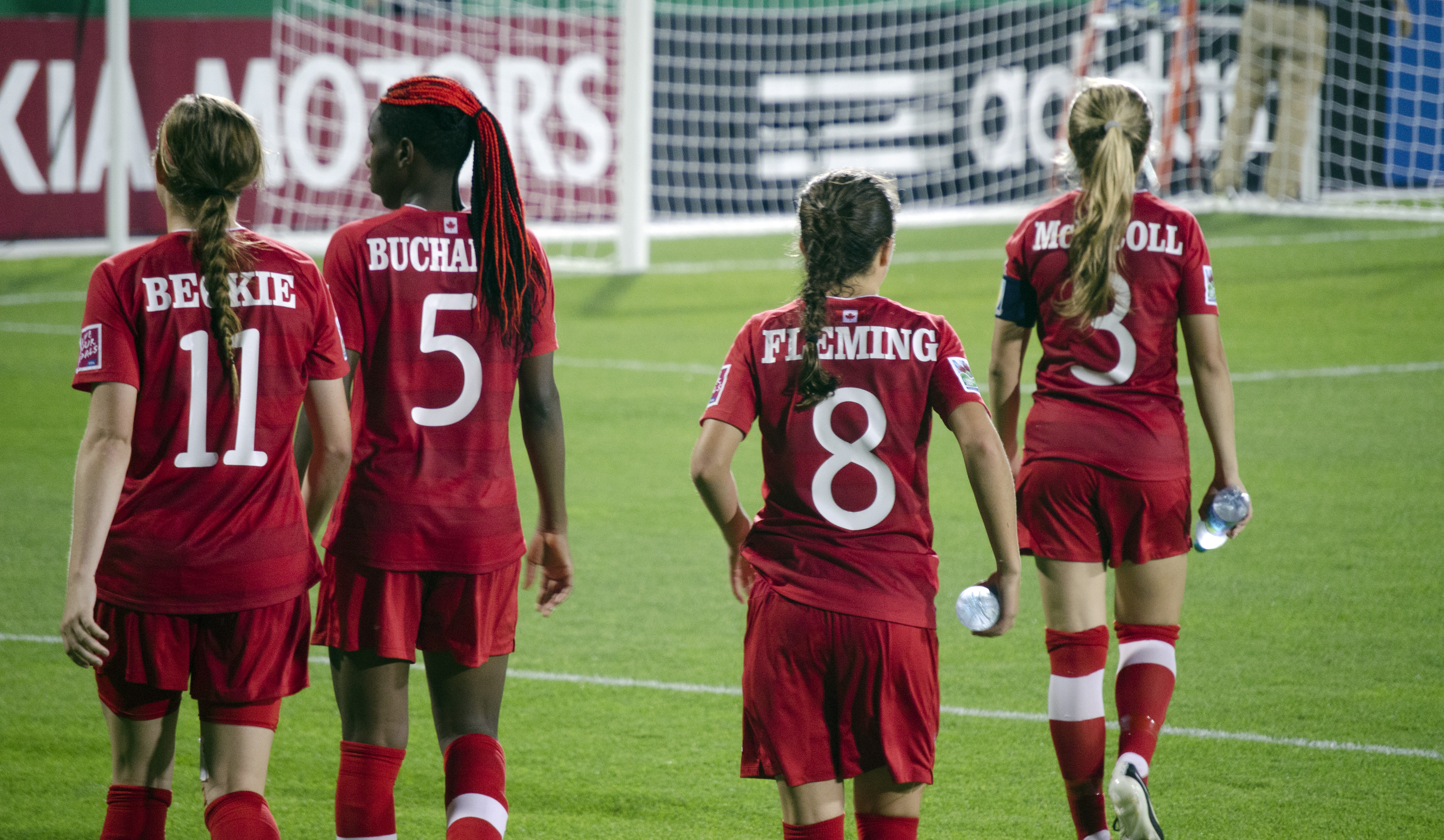 Janine Beckie, Kadeisha Buchanan, Jessie Fleming, and Kinley McNicoll walking back to the dressing room after the game vs Team Ghana.