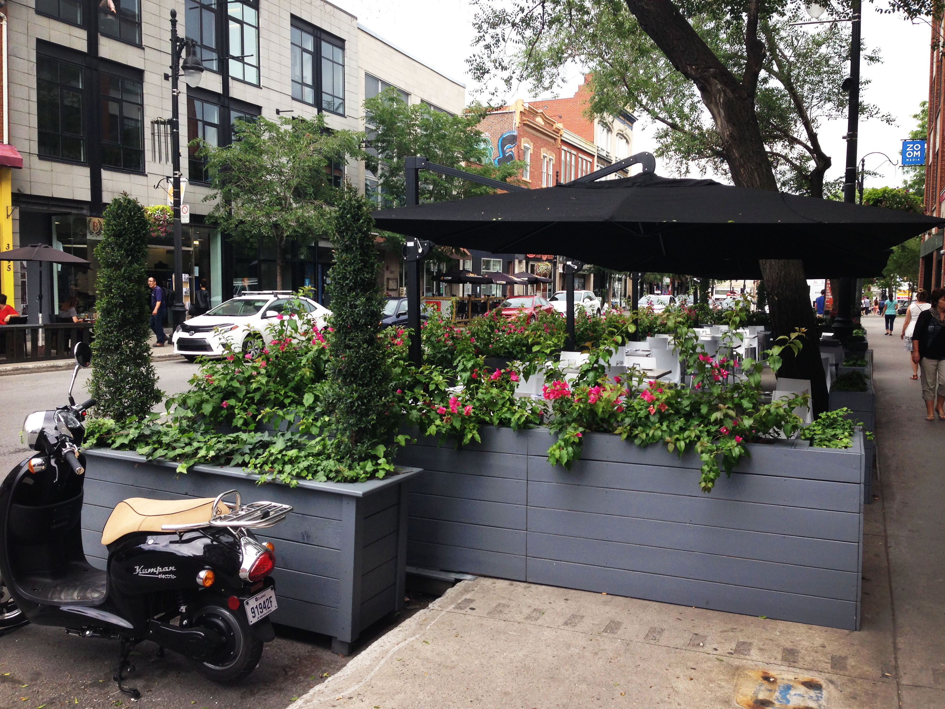 Patio spaces designed to fall into the streets of Montreal.